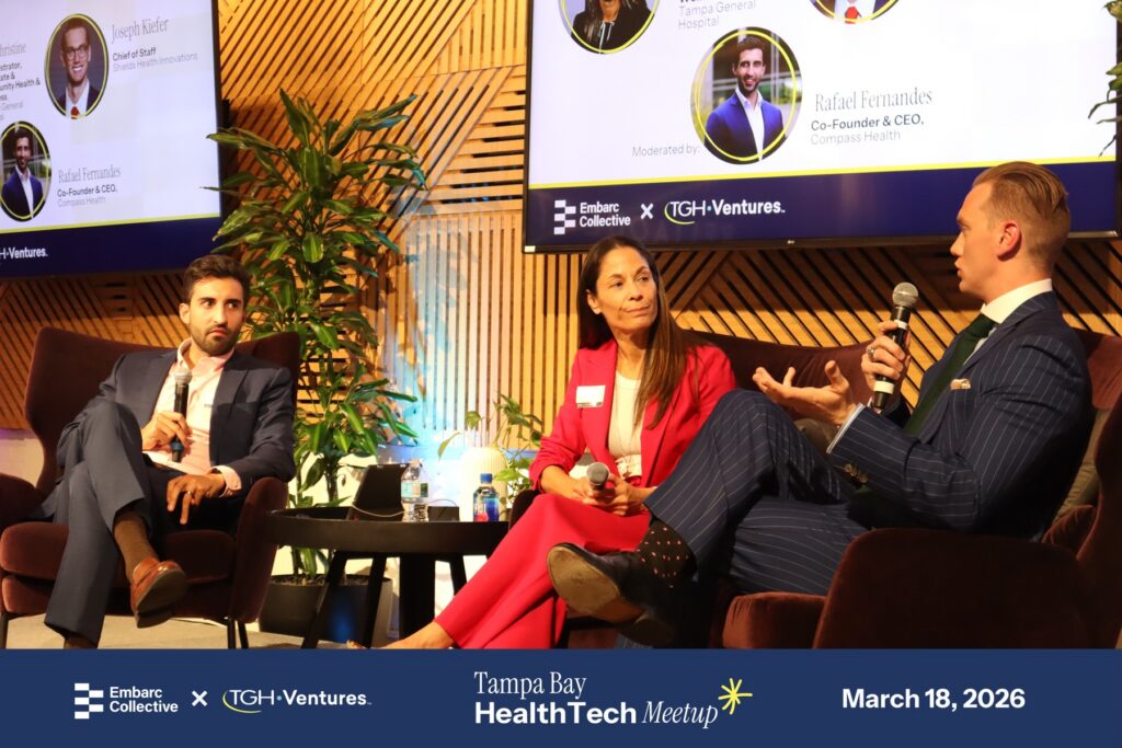At our Q1 Tampa Bay HealthTech Meetup Powered by Embarc Collective & TGH Ventures, founders, operators, and healthcare leaders explored how technology can help build healthier communities—without compromising trust, access, or human connection.